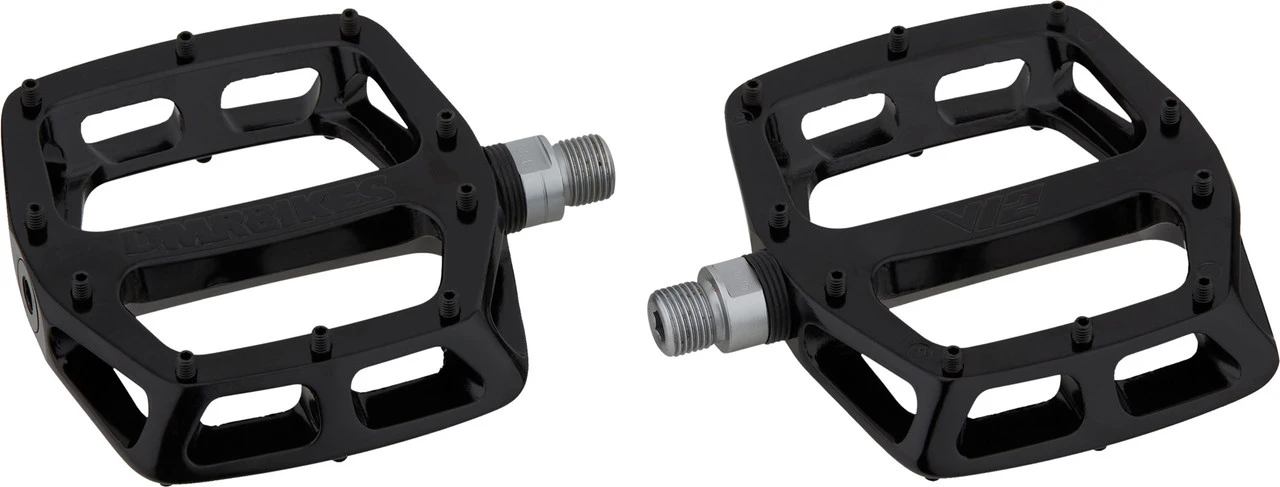 Features:massives Flat-Pedalsuperstabile, oversized CroMoly Achseeinteiliger Aluminium Pedalkäfig im „Double concave” Designdoppelte Industrie- und Gleitlageraufwendige Dichtung, austauschbare PinsLieferumfang:1 Paar Plattformpedale DMR V12