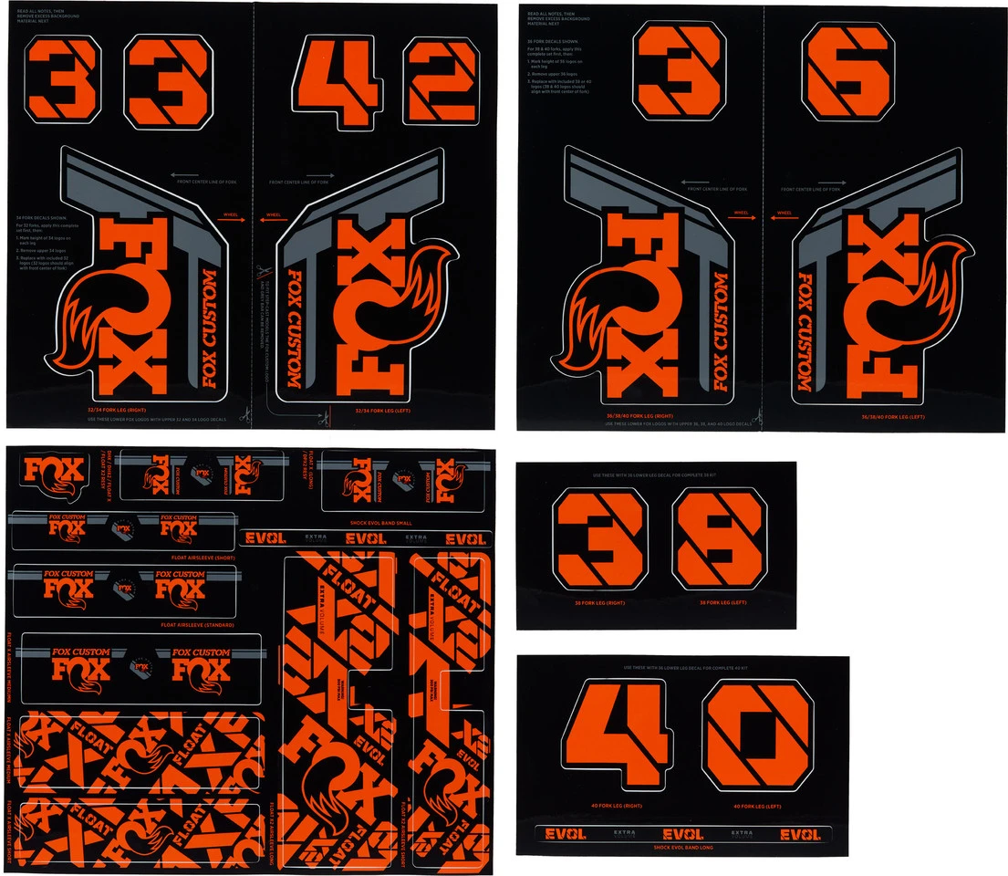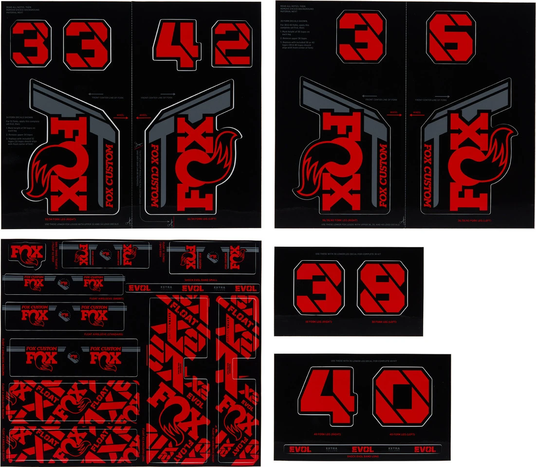 Features:spezifische Decals für kompatible Federgabel- und Dämpfermodelleausreichend für mehr als eine Federgabel und einen DämpferHerstellernummern:factory orange:803-01-731stealth black:803-01-732kashima:803-01-733pistachio:803-01-734turquoise:803-01-735battleship grey:803-01-736root beer:803-01-737blue:803-01-738red:803-01-739storm blue:803-01-740olive drab:803-01-741Lieferumfang:1 x Aufklebersatz Fox Racing Shox Fork and Shock Decal Kit