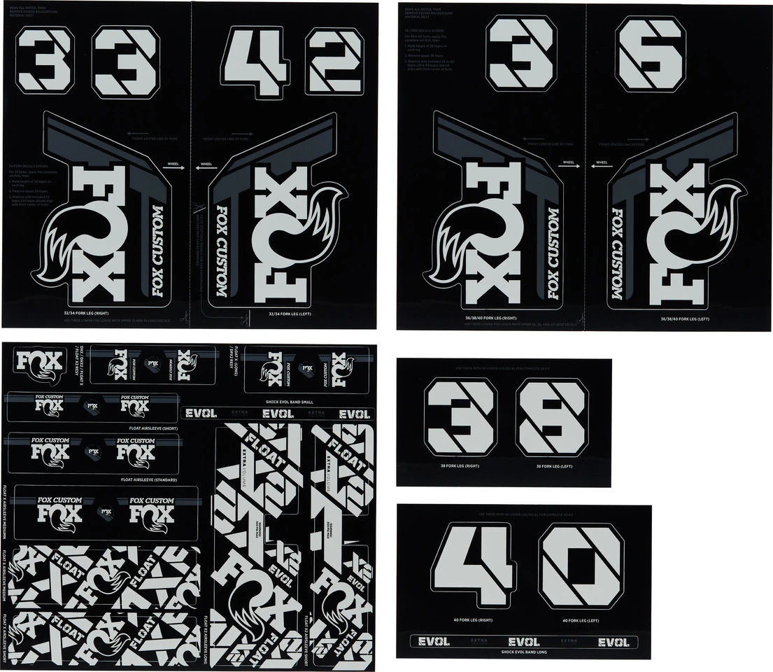 Mit diesem Fork and Shock Decal Kit von Fox Racing Shox erhältst Du verschiedene Aufkleber passend für verschiedene Federgabeln und Dämpfer ab Modell 2021.
