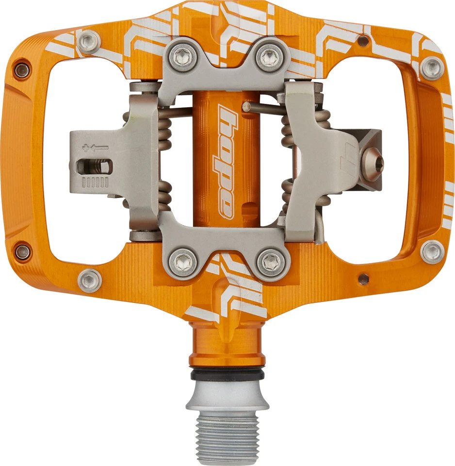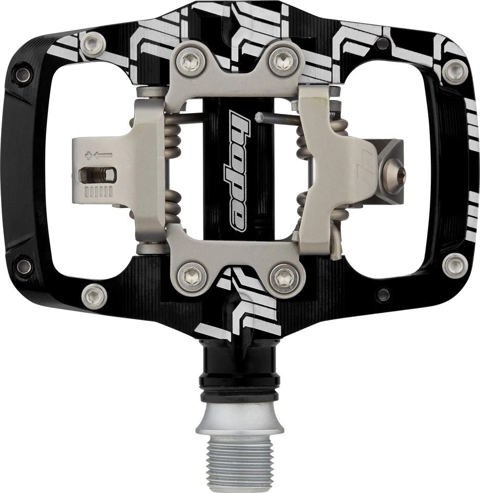 Spezifikationen:Einsatzbereich:All MountainAusführung:Klickpedale mit PlattformPedalsystem:HopeMontage Schuhplatte:2-LochTechnische Daten:Material Pedalkörper:AluminiumMaterial Achse:Stahl (CrMo)Lagerung:PatronenlagerBewegungsfreiheit:4° (No. 4), 5° (No. 5)Auslösewinkel:12° (No. 4), 13° (No. 5)Empfohlene Schuhplatten:Hope CleatsAnzahl Pins pro Pedal:8Features:Trail-Klickpedale mit Plattform aus CNC-gefrästem AluminiumHope-eigenes Dual-Klick-System für festen Halt und gleichmäßiges Ein- und Ausklickverhaltenstufenlos einstellbare Federkraftweiter Winkel für besonders flaches oder steiles EinklickenBefestigungsmöglichkeiten für 4 höhenverstellbare Pins pro Pedalseitezwei Paar Cleats mit 4° oder 5° Float und unterschiedlichem Auslösewinkel2 mm seitlicher FloatCleats und Klickmechanismus aus rostfreiem Edelstahlwartungsarm und komplett zerlegbarHerstellernummer:PDUTC
