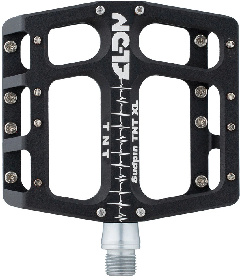 Die Sudpin IV XL TNT Plattformpedale von NC-17 sind breit, flach, formschön und vielseitig einsetzbar