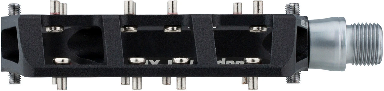 Spezifikationen:Einsatzbereich:Dirtjump & Slopestyle, All Mountain, Enduro, DownhillAusführung:PlattformpedaleTechnische Daten:Material Pedalkörper:Aluminium (6061)Material Achse:Stahl (CrMo)Lagerung:3 Präzisionslager je PedalDichtungen:2-fach gedichtetBauhöhe:17,7 mmMaße:106 x 110 mm (konkav)Anzahl Pins pro Pedal:24Features:aus CNC-bearbeitetem AluminiumAchse aus gehärtetem CrMo-StahlFAIL SAFE Systemmit Lasergravur und Identifikationsnummer24 austauschbare Pins pro PedalTechnologie:FAIL SAFE System: