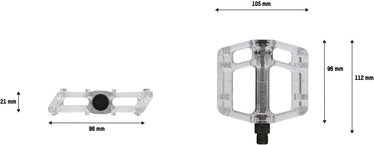 Spezifikationen:Einsatzbereich:All Mountain, TrailAusführung:PlattformpedaleTechnische Daten:Material Pedalkörper:Kunststoff (CR44)Material Achse:Stahl (CrMo)Lagerung:KugellagerBauhöhe:20 mmMaße (Länge x Breite):96 x 96 mm*