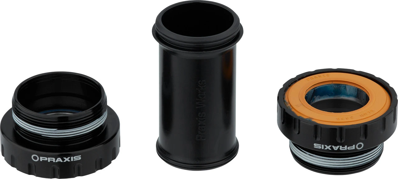 Lieferumfang:1 x Lagerschale Praxis Works BSA mit Lager, links1 x Lagerschale Praxis Works BSA mit Lager, rechts1 x Innenlagerhülse Praxis Works2 x Dichtung orange